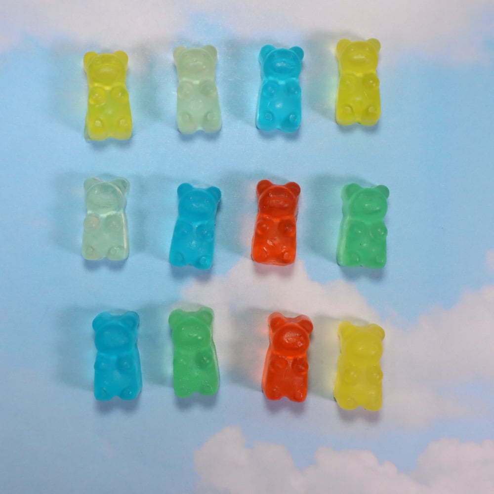 Hand soaps come in pack of 10 soap gummy bears with color variety. Fun for all ages.